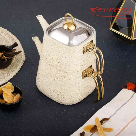 Evren Kitchen Cream Square Teapot stands out with its longevity and durability. The lid holder and handles are designed to be compatible with the teapot and also offer a stylish appearance.