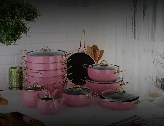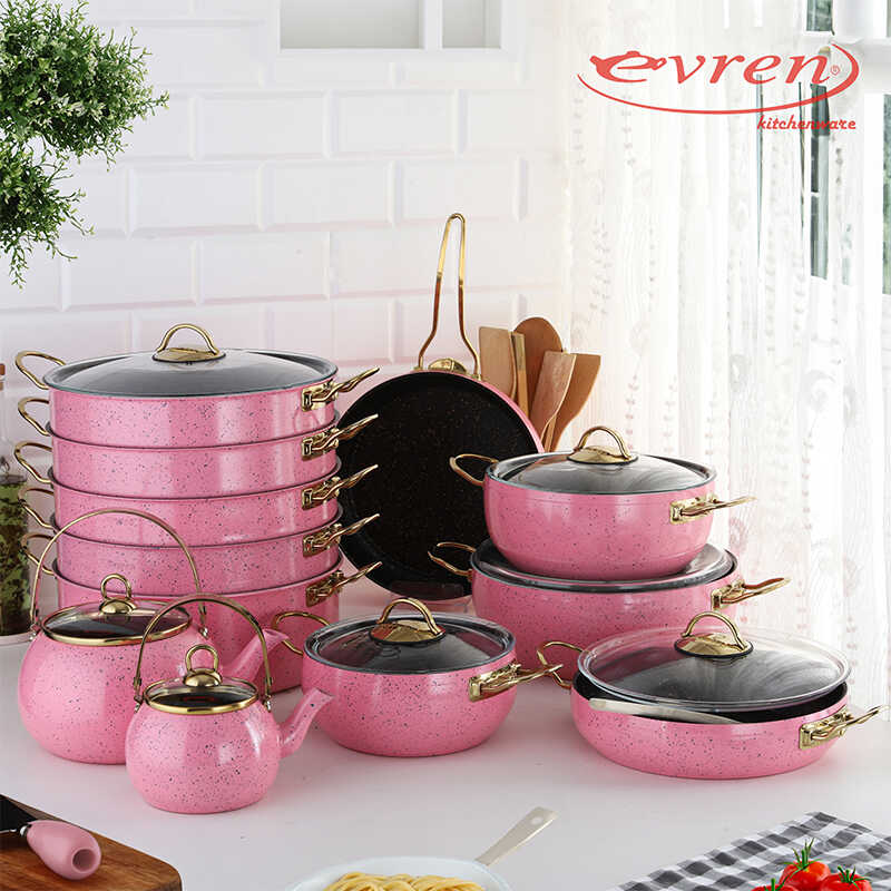 Evren Kitchen's specially designed Pink 19 Pcs Set offers first-class quality that will highlight your talents in the kitchen. This cookware is made of durable materials and designed for long-lasting use.