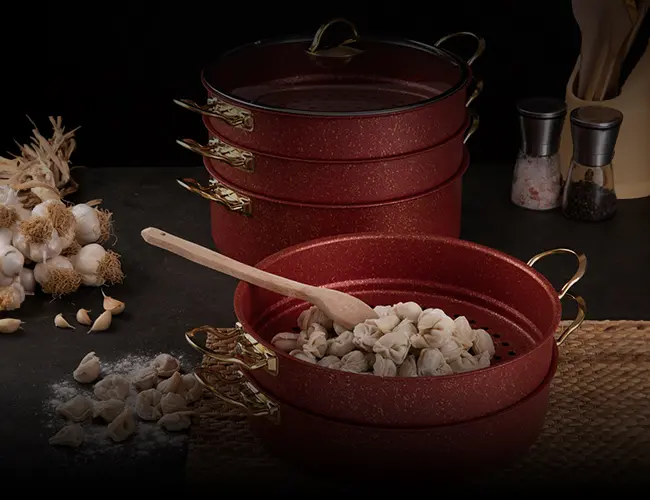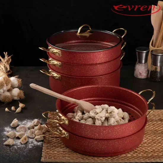 Evren Kitchen's specially designed Red Steamer offers first-class quality that will highlight your talents in the kitchen. This cookware is made of durable materials and designed for long-lasting use.