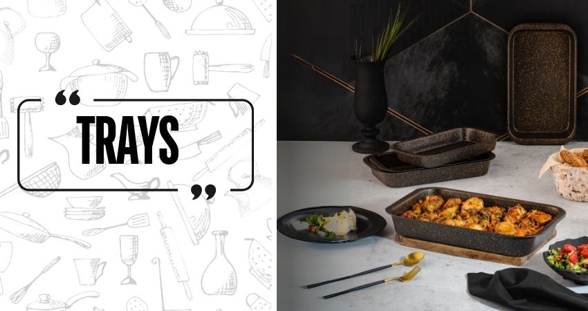 Trays are tools that are frequently used in the kitchen and have a wide range of uses, from serving to cooking. Trays generally have a flat surface and ensure that food is cooked properly. Produced in different sizes and materials, trays are especially ideal for dishes cooked in the oven. Made of materials such as stainless steel, aluminum and ceramic, trays are essential tools that every kitchen should have. These kitchen utensils provide practicality in both cooking and serving food. Trays appeal to every need in the kitchen with their durability, easy cleanability and different designs.