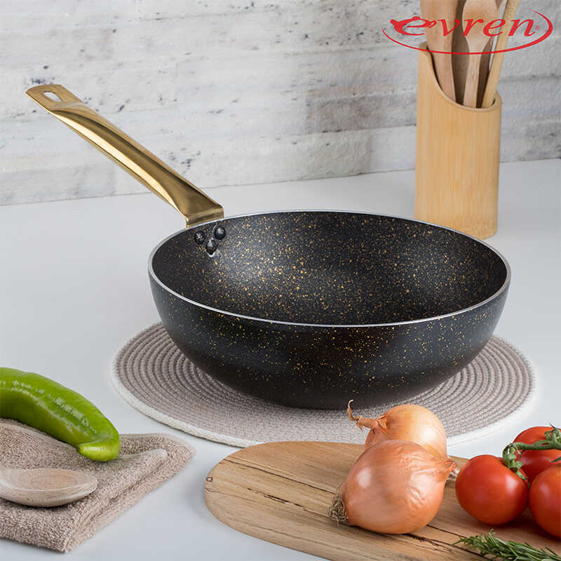 Evren Kitchen's specially designed Wok Pan offers first-class quality that will highlight your talents in the kitchen. This Wok Pan made of durable materials and designed for long-lasting use.